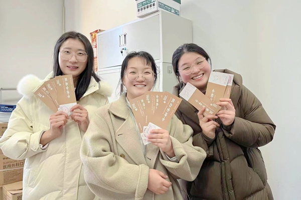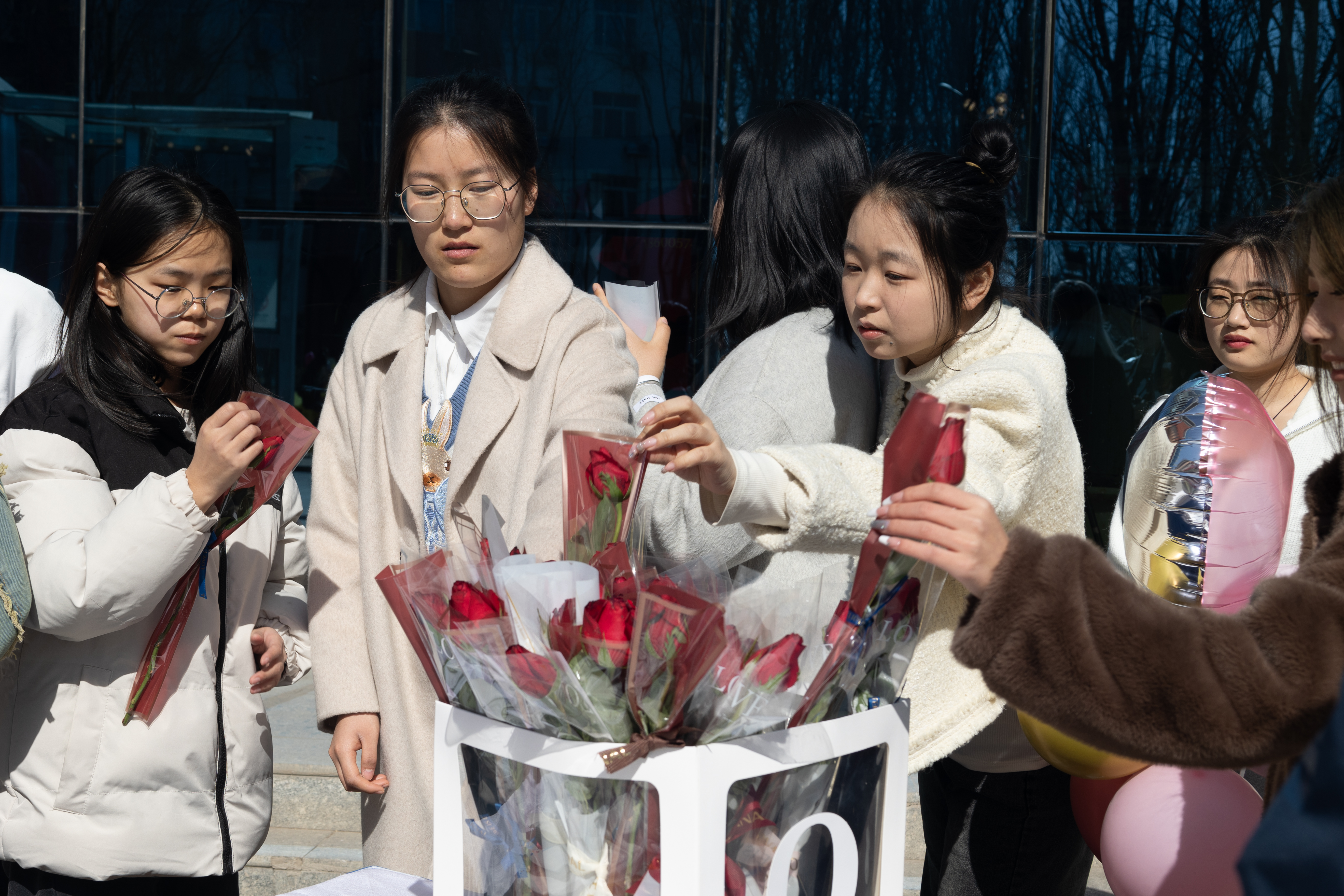 为女性师生送递鲜花