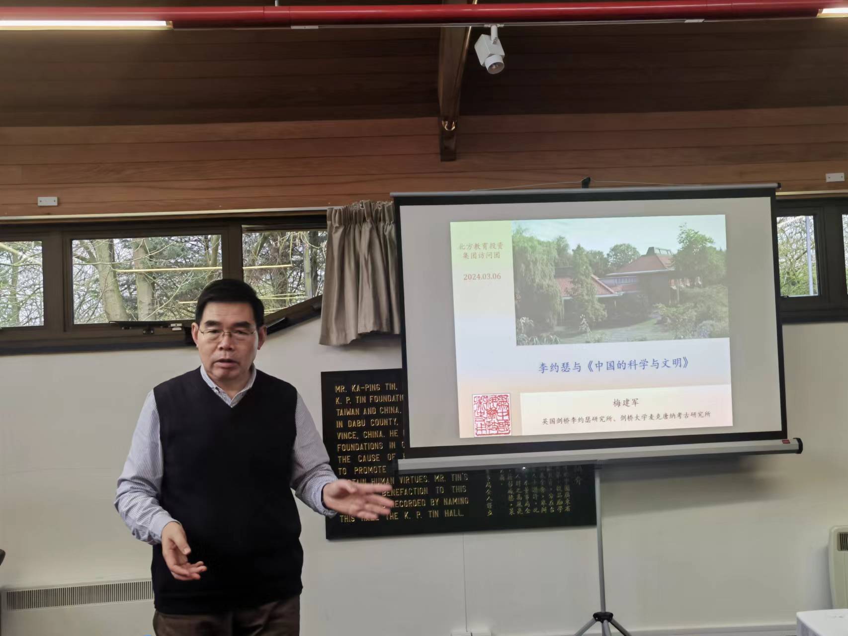 3 月 6 日,考察交流团访问了李约瑟研究院,探寻国际化交流与合作的创新路径。考察交流团受到了研究所所长梅建军先生的热情接待,并听取了梅建军所长关于李约瑟和《中国科学技术与文明》讲座。“李约瑟研究所是国际上研究中国古代科技文化的四大中心之一,创办人李约瑟先生是英国皇家学会会员,著名的生物化学家。”梅建军所长向考察交流团讲述着李约瑟研究所的历史沿革,在“李约瑟之问”中引发深入地思考和交流。