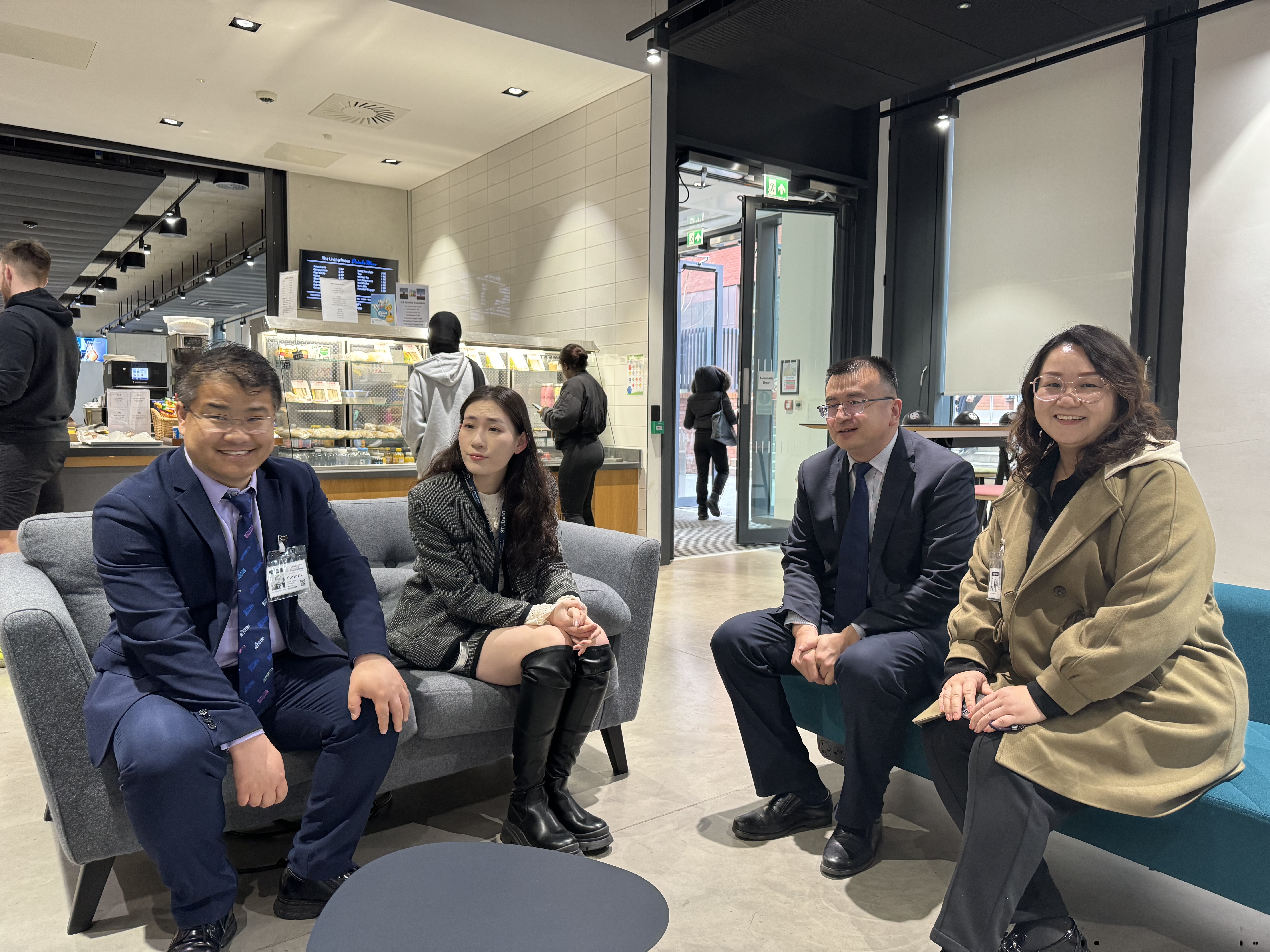 “远在异国他乡能够看到母校的校领导和院长倍感亲切,我在母校搭建的本硕直通平台上实现我的读研梦,非常感谢学校的培养。我也一直在积极努力学习,希望能够毕业的时候回报母校和社会。”参观期间,考察交流团看望了正在伯明翰大学学院读研的优秀毕业生王靖同学。王靖是燕京理工学院国际商学院2016 级财务管理专业毕业生,2023年9月到伯明翰大学学院学习金融与会计专业攻读硕士学位。王靖化身小导游,向考察交流团介绍着伯明翰大学学院。考察交流团勉励王靖继续勤奋学习,不断提升专业能力,抓住每一份机遇去与更好的自己相遇。