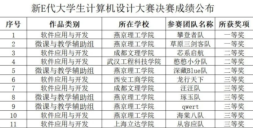 新E代数字智能信息技术产业学院大学生计算机设计大赛决赛决出了一等奖两项、二等奖三项、三等奖六项。