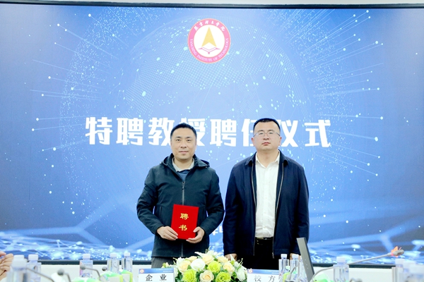 现场,颁发了特聘教授证书,签订了校企实习就业协议,进行了大学生实习与就业基地授牌。