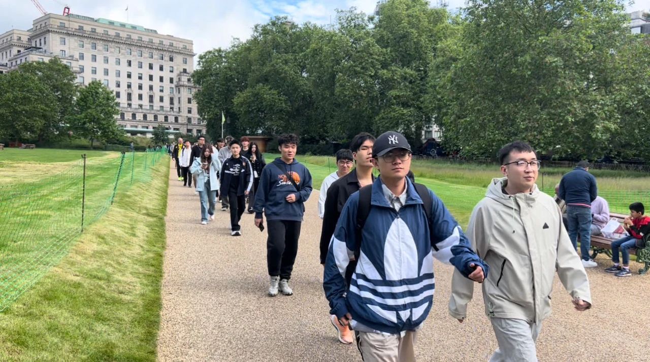 学员纷纷在圣詹姆斯公园拍摄照片,醉心于异域风情。“圣詹姆斯公园是一个美丽而宁静的地方。在这里,我可以感受到大自然的和谐与宁静,也可以领略到英国文化的深厚底蕴。公园内的湖泊、草坪和古老树木都让我感到无比舒适和放松。”“在圣詹姆斯公园中漫步,我仿佛能听到历史的回声。那些古老建筑和纪念碑让我感受到了历史的遗迹。这次参观让我更加了解了英国的文化和历史,也让我更加珍惜现在的生活。”他们如实叙述。