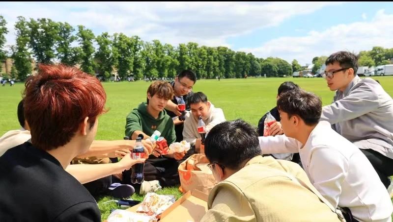 在英式体育活动体验中,UK004团的学员们感受了足球、板球等经典英式体育项目的魅力,与英国本土的体育爱好者一同挥洒汗水,体验团队合作的喜悦与激情。在绿意盎然的草坪上,UK004团的学员们铺开野餐垫,摆放着各种美食与饮料,享受着英国悠闲的生活节奏。