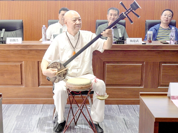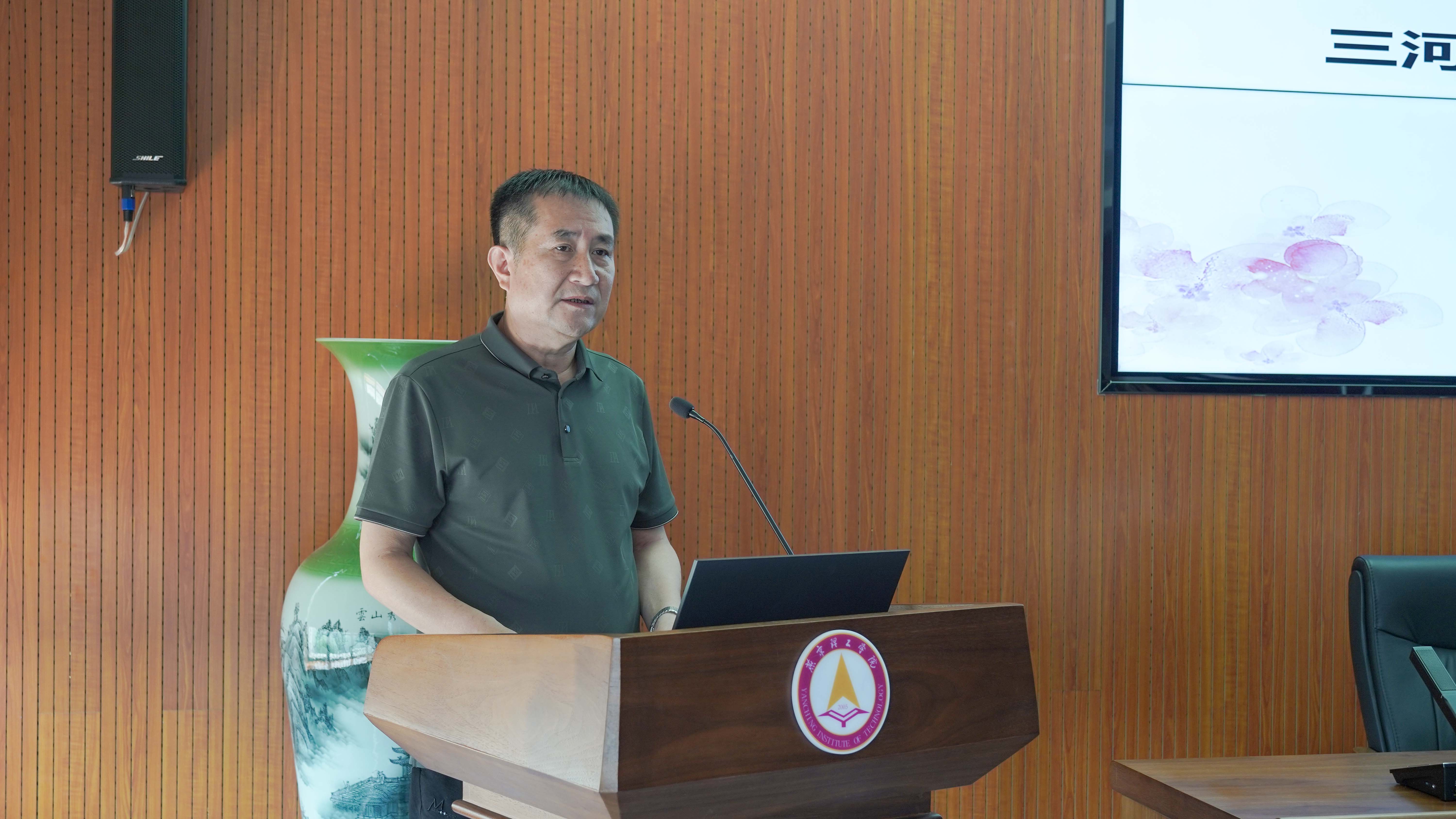 本网讯(学生处 宁馨雨)6月20日,京东大鼓——非遗文化工作室成立仪式在综合办公楼525会议室举行。三河市文化广电和旅游局局长杨建武,京东大鼓国家级非遗传承人崔继昌,三河市文化广电和旅游局副局长孙磊,三河市文化广电和旅游局崔征主任,校长杨庚宇,党委副书记、副校长、社会公益学院院长王传超,学生处负责人及各学院党总支书记、副书记、京东大鼓非遗传承学员等人员参与此次仪式。