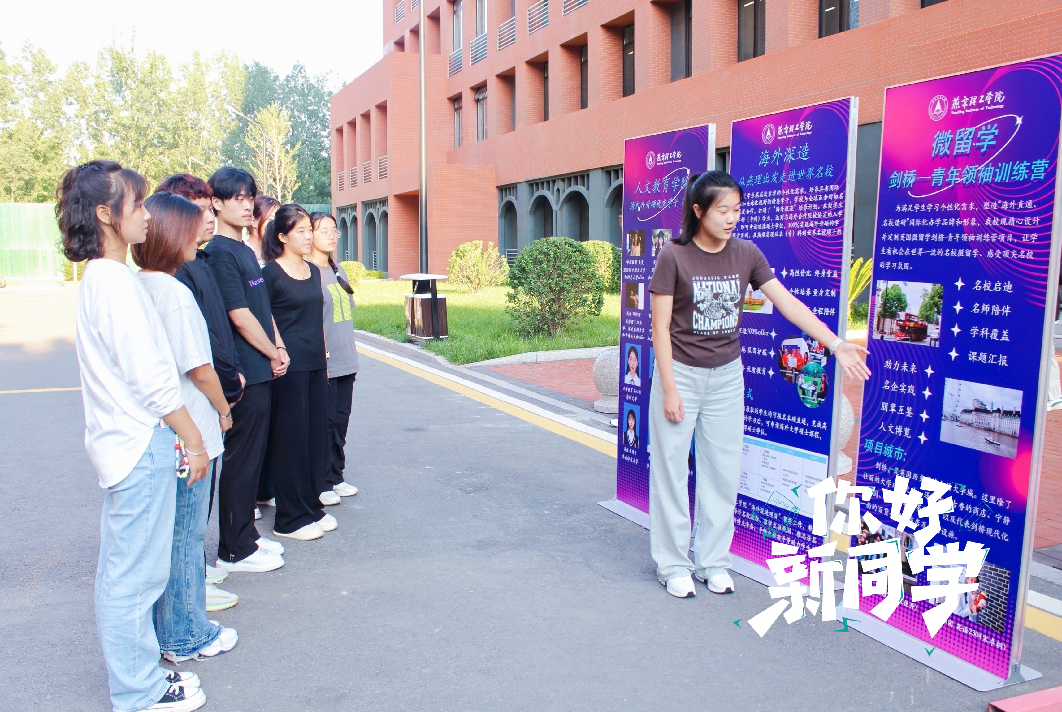 “这次的研学之旅,无论是从学术还是文化层面,带给我的都是一份不可多得的宝贵财富。”在迎新点位前,人文教育学院2023级学生宋卓桐正在向新生及家长讲述她赴英微留学的所见所闻,吸引众多新生及家长驻足聆听。今年6月,燕京理工学院剑桥—青年领袖训练营UK004团赴英开展微留学,带队老师全程进行一对一指导、帮助、协调,学生们近距离感受到了世界名校的文化氛围和育人体系,走进国际课堂,开拓国际视野。在各学院的迎新点位前,海外深造、微留学咨询台前人头攒动,学生们或手持宣传册仔细研读,或围坐一圈聆听学长学姐的留学经验分享。从海外深造国家的选择、申请流程、奖学金政策,到海外生活的适应、文化差异的处理等,他们充满对海外深造学习的憧憬与向往。微留学作为一种灵活、短期的海外学习体验方式,正受到越来越多学生的青睐。它不仅能够让学生在短时间内体验异国文化、提升语言能力,还能为将来的海外深造或国际就业积累经验。