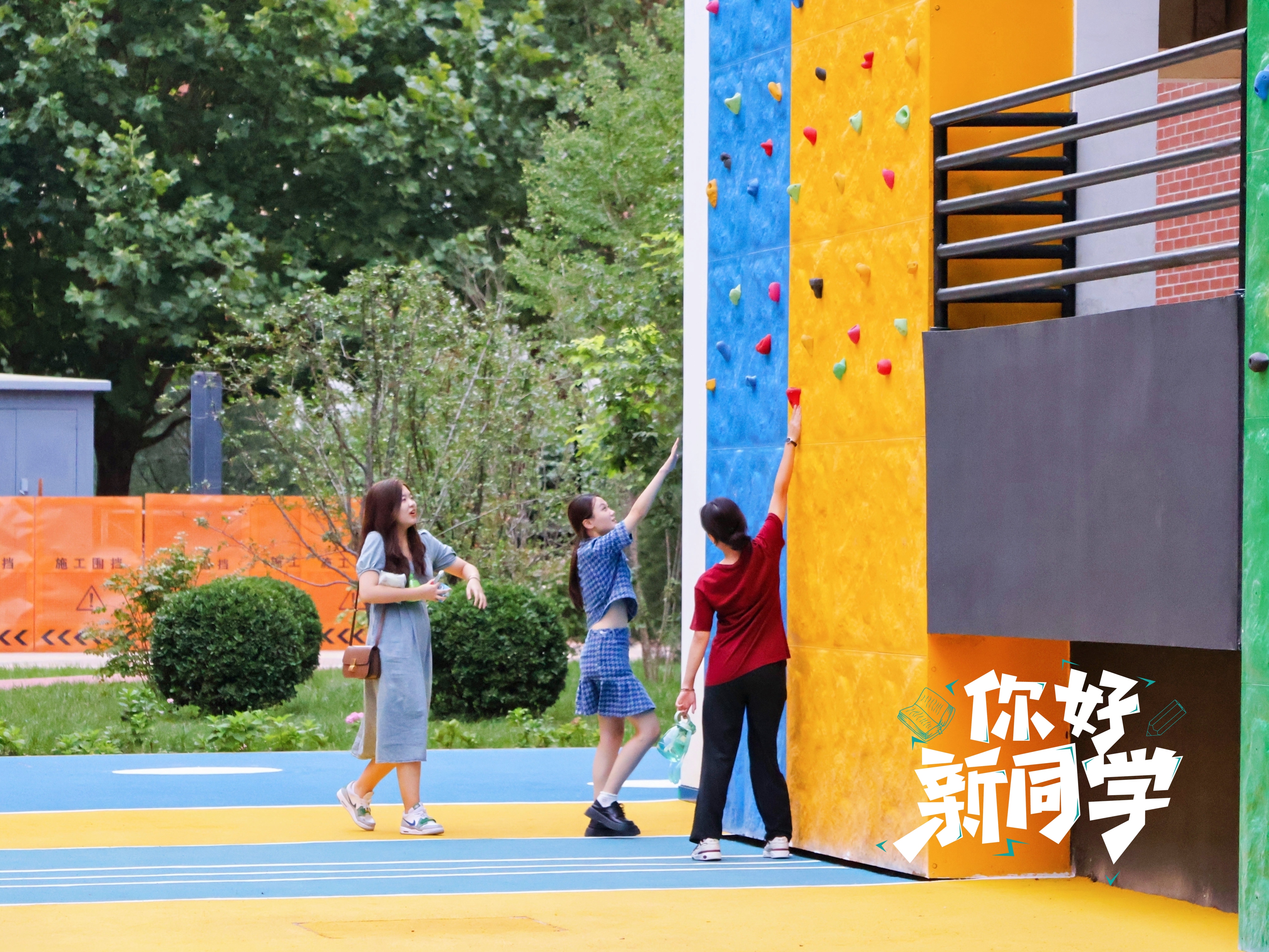新生在攀岩墙游玩