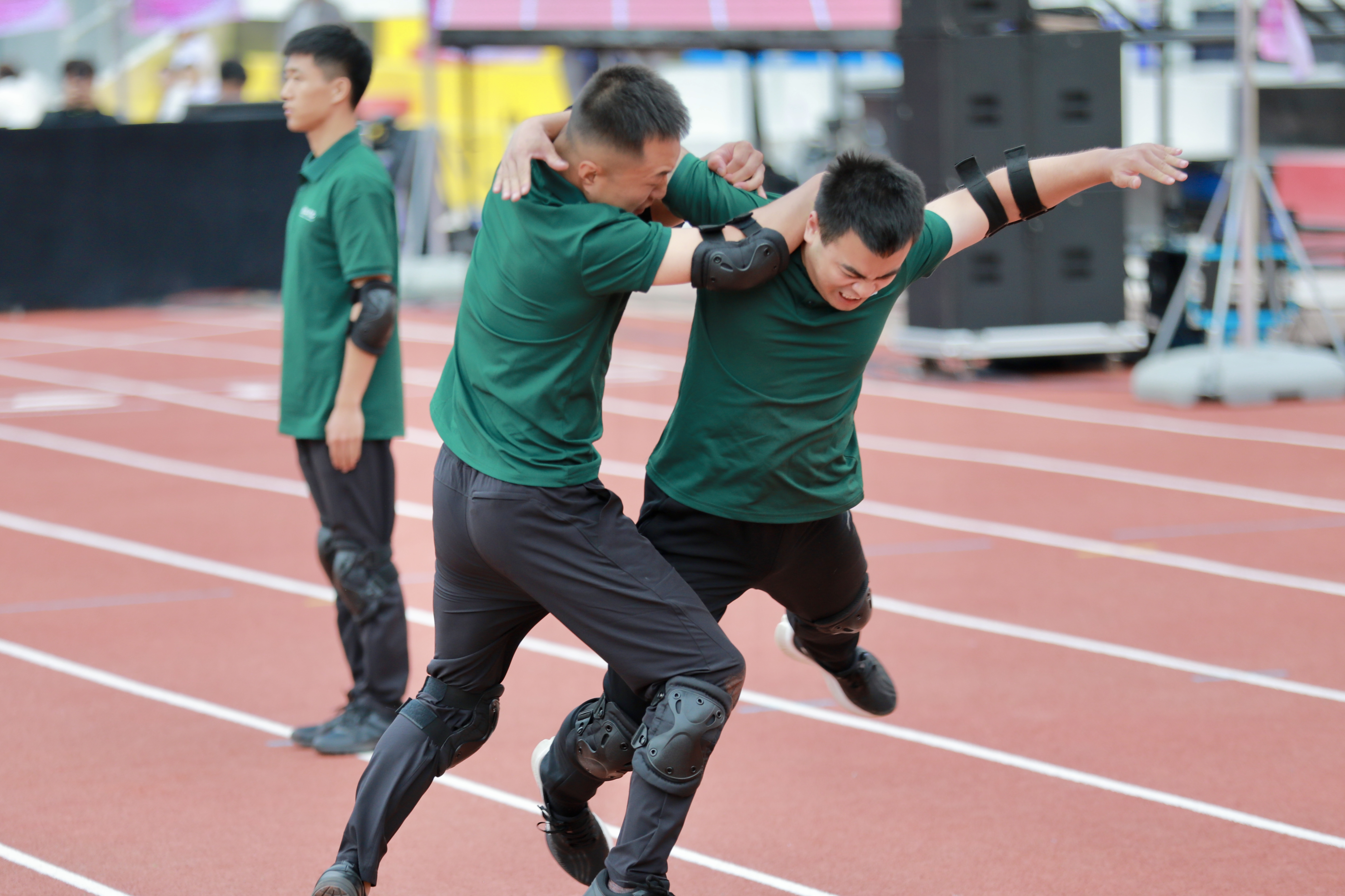 从基础的军体拳到高难度的战术动作演练,军训教官们逐一展示了多个训练科目,步伐统一,口号响亮,展现了极高的团队协作能力和军事素养。