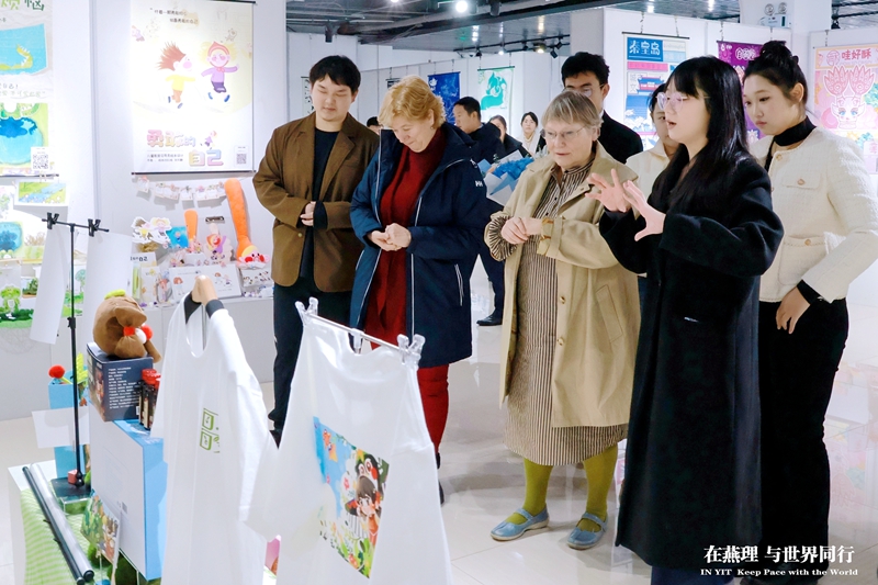 “哇!多么精美漂亮的手工作品!”在艺术展厅,从文创作品、潮流服饰到精美雕塑,索伦森博士和马格迪博士被学生们的创意作品和课堂实践深深吸引,无不感叹燕理学子的创新精神和实践能力。