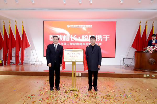 在全体参会人员的见证下,李志强副总裁与杨庚宇校长共同签署了合作协议,并为“燕京理工学院教学医院”揭牌。这标志着双方正式建立战略合作关系,共同开启医教相长的新征程。