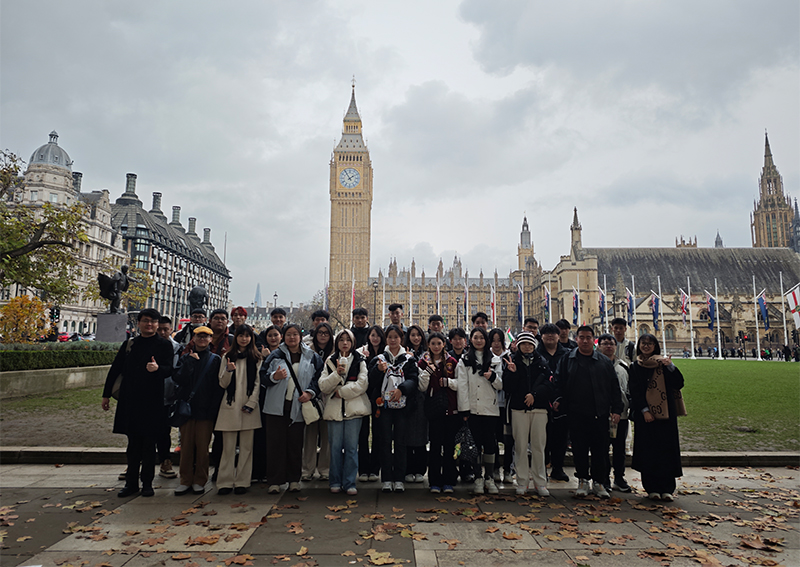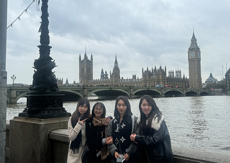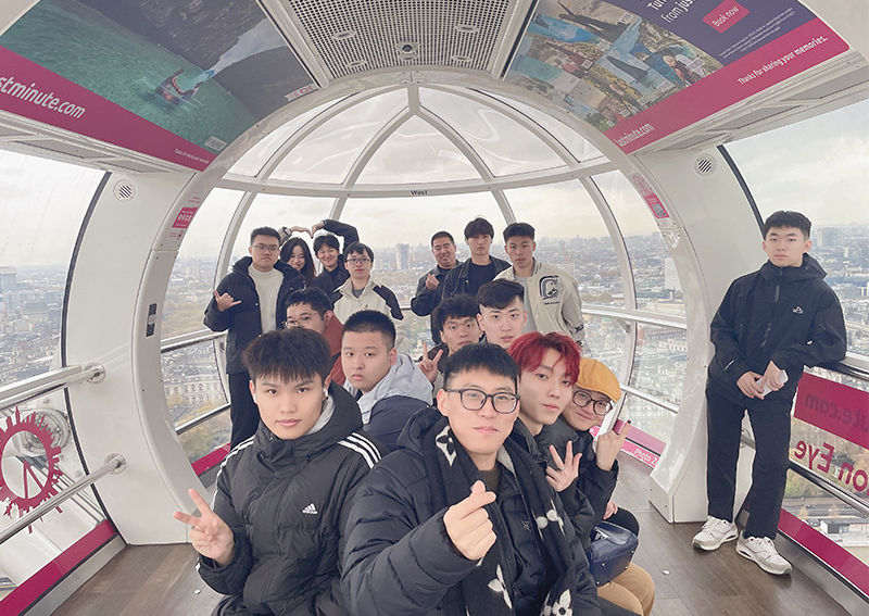 大本钟是矗立在泰晤士河畔的古老钟楼,是伦敦市具有代表性的地标性建筑之一。学员们聆听着悠扬的钟声,仿佛能听到历史的回响,感受到了时间的流转与岁月的沉淀。“在‘伦敦眼’之上,我们俯瞰伦敦的城市美景,从繁忙的街道到宁静的河流,从古老的建筑到现代的摩天大楼,每一处都让人心旷神怡,对未来充满了无限遐想。”艺术学院数字媒体艺术专业的鄂子睿说道。