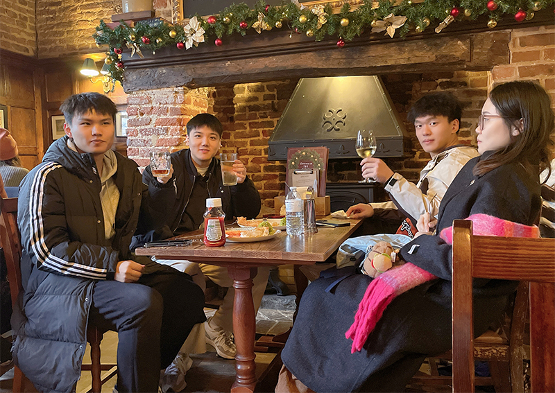 “这次剑桥研学之旅对我来说是一次真正的成长之旅。在这里,我不仅学到了很多关于英国历史和文化的知识,更重要的是,我学会了如何与来自不同国家和文化背景的人交流。在厨艺大赛中,我与队友们一起在异国他乡烹饪美食,或是在睡前聊聊今天的收获。和同学们一起研学的时候,我深刻体会到了团队的力量和友谊的珍贵。同时,我也学会了如何在面对挑战时保持冷静和乐观,这种心态将伴随我走过未来的每一步。”人文教育学院2021级小学教育专业的陈亚欣说道。