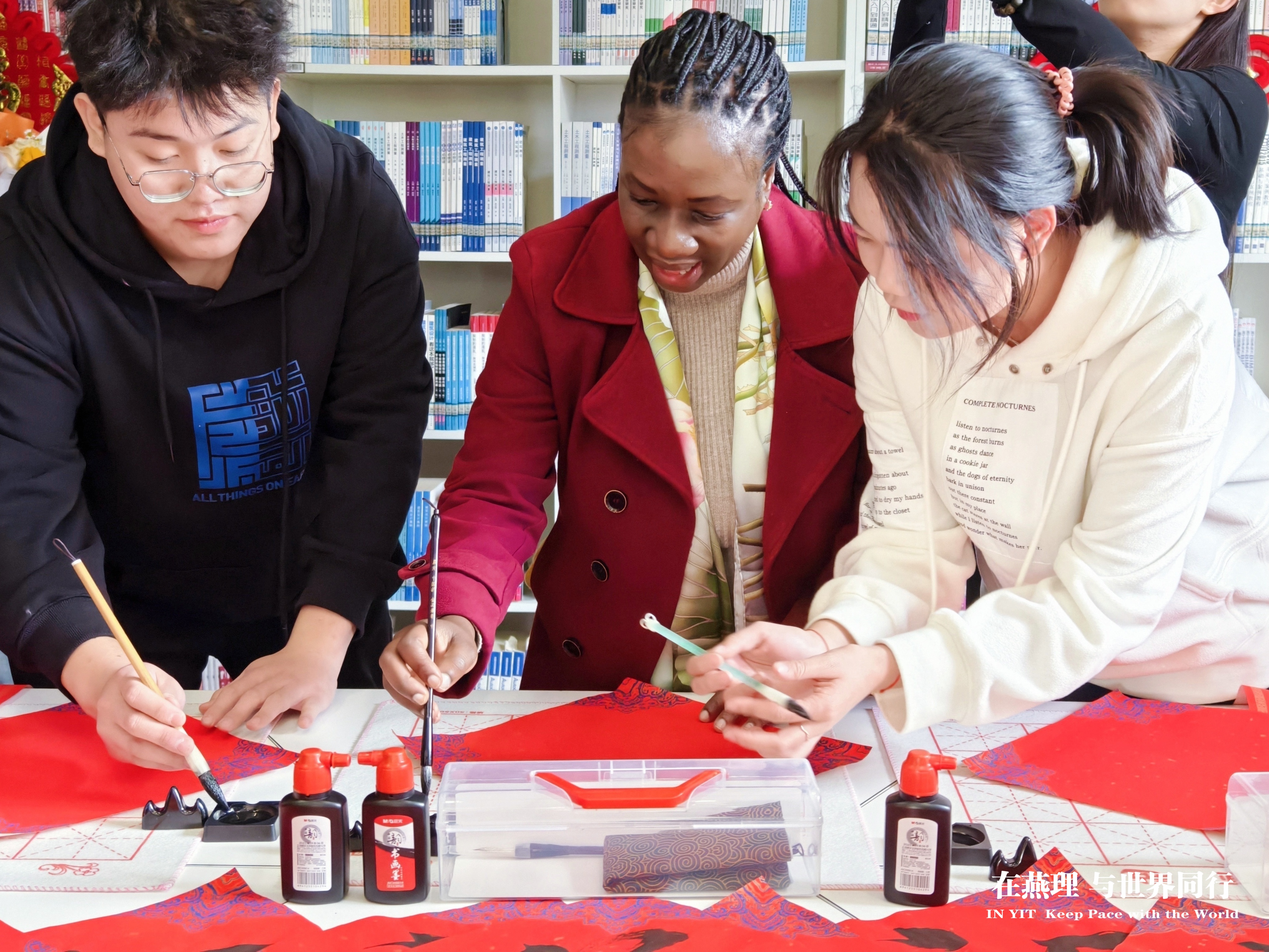 肯尼亚青年代表在师生的指导下,手持剪刀,小心翼翼地剪裁着红纸。发挥着自己的创造力与想象力,将一片片红纸变成了一幅幅精美的窗花作品。还学会了如何将面粉、糖、油等食材巧妙地融合在一起,制作出形状各异、口感细腻的海棠点心。
