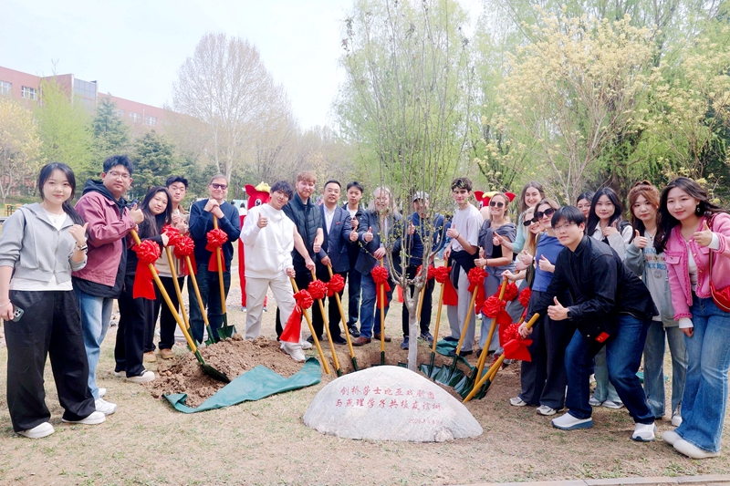 在燕京理工学院国际海棠文化艺术节举办期间,副校长赵鹏及燕理师生与英国剑桥莎士比亚戏剧团的成员们共植校花海棠树,挥锹铲土,汲水浇灌,海棠花友谊之树在燕理茁壮成长。