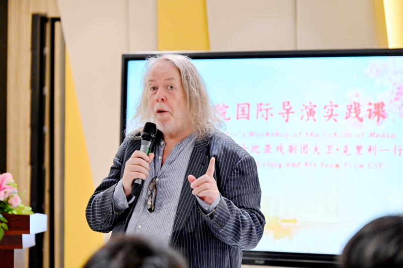 传媒学院的学生们表演了剧目《福尔摩斯的抉择》,大卫·罗伯特·克里利、大卫·迈克尔·香农、布兰登·雷·凯文·梅菲尔德为师生们开展了一场现场教学。包括发声热身、塑造不同人物的不同体态、舞台技巧与形体控制、喜剧中的人物体态训练等多个方面。在发声热身环节,他们通过一系列有趣的发声练习,帮助学生们打开声音通道,提高发声的准确性和表现力。在塑造人物体态环节,他们亲自示范,引导学生们根据不同人物的性格特点和身份背景,调整自己的体态和动作,使表演更加生动形象。