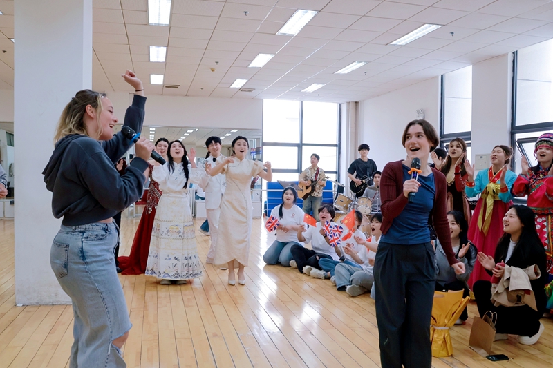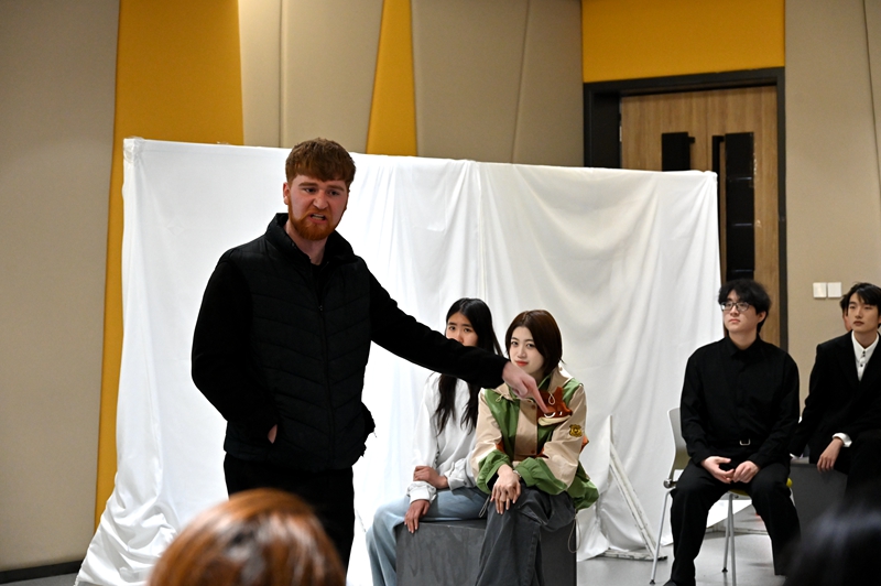英国剑桥莎士比亚戏剧团的成员们与大学生艺术团互动交流