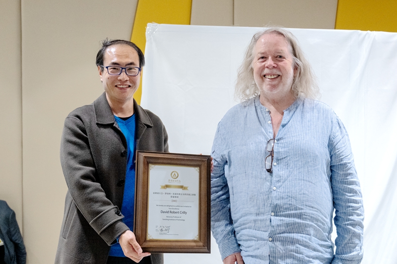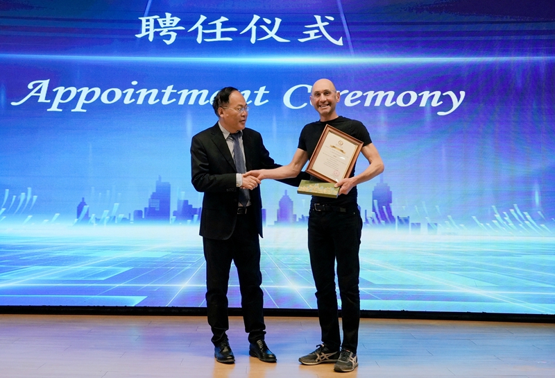 传媒学院院长张炜向大卫·罗伯特·克里利颁发“荣誉教授”聘书