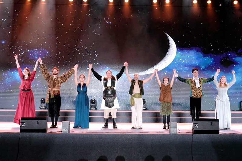 夜幕将至,英国剑桥莎士比亚戏剧团携经典剧目《仲夏夜之梦》亮相体育场,与千余名师生重温经典名著的永恒魅力。《仲夏夜之梦》是英国剧作家威廉·莎士比亚创作的一部喜剧,讲述了一个关于爱、梦与奇迹的爱情故事,细腻描绘了有情人历经波折终成眷属的动人故事。现场,英国剑桥莎士比亚戏剧团的成员们倾情演绎,重现经典名著剧目。