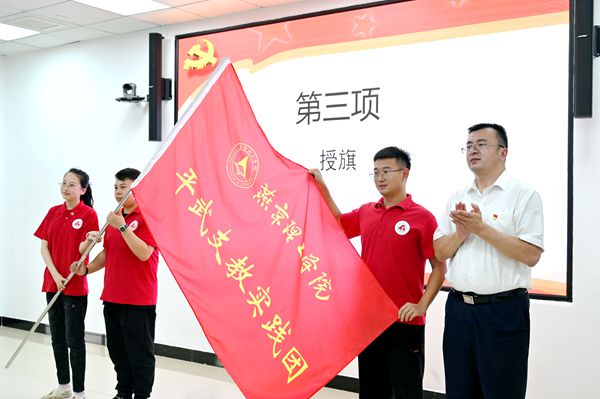 党委副书记、副校长王传超向支教志愿者授旗