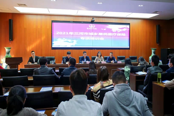 本网讯(学生处 李颖 苗浩然)为进一步做好我校学生参加城乡居民基本医疗保险工作,切实保护学生利益。10月29日,医保局局长、党组织书记刘春泉,医保局副局长方芳,医保局医疗保障中心管理服务中心主任马万里、胡志斌莅临我校,并于办公楼525会议室召开三河城乡居民医疗保险专项培训会,旨在进一步动员和指导2022年大学生参保工作。我校党委副书记、副校长王传超,学生处处长宣银,各二级学院主管学生工作副院长,学生处相关老师及全体辅导员老师参加本次活动。此次会议由学生处处长宣银主持。