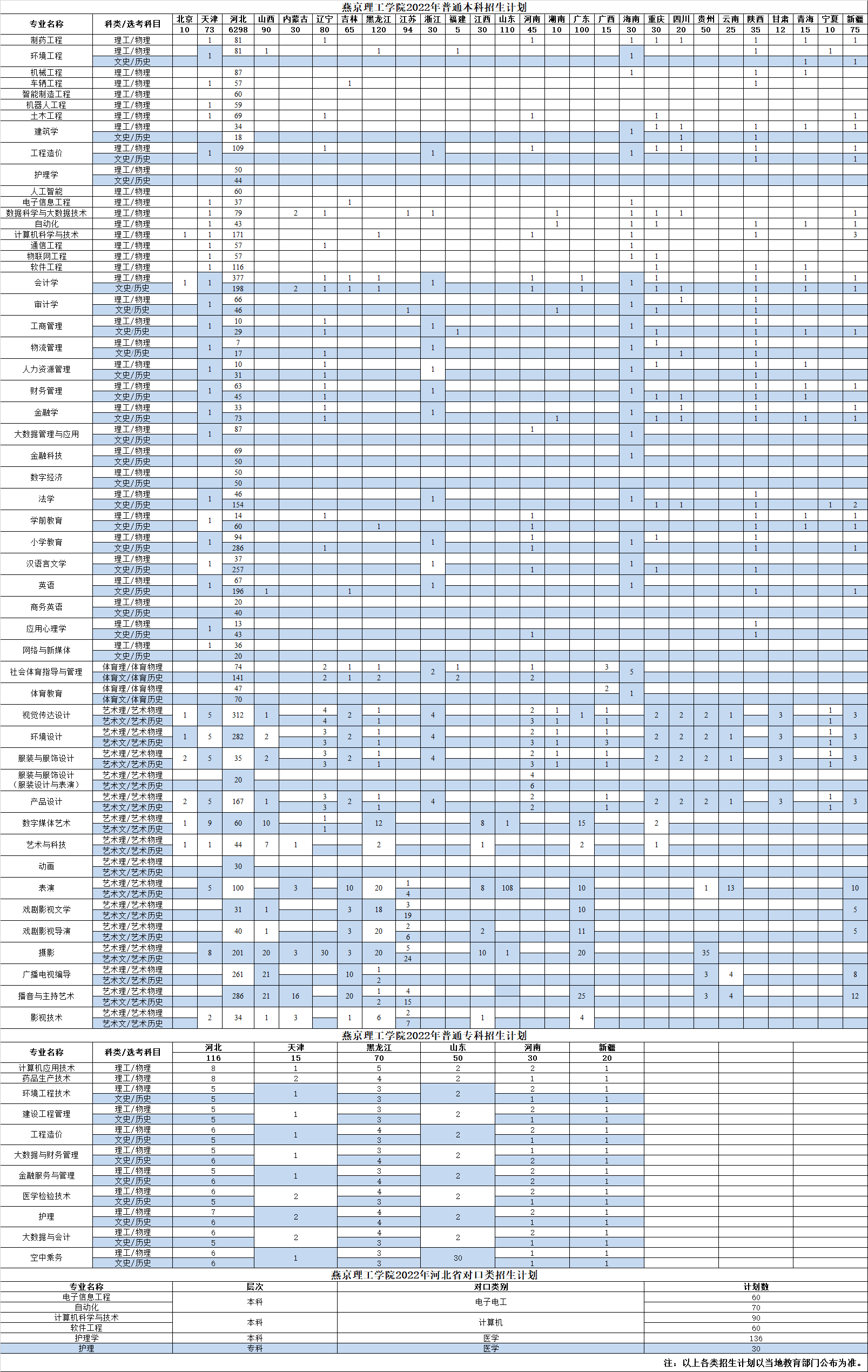 2022年燕京理工学院招生计划